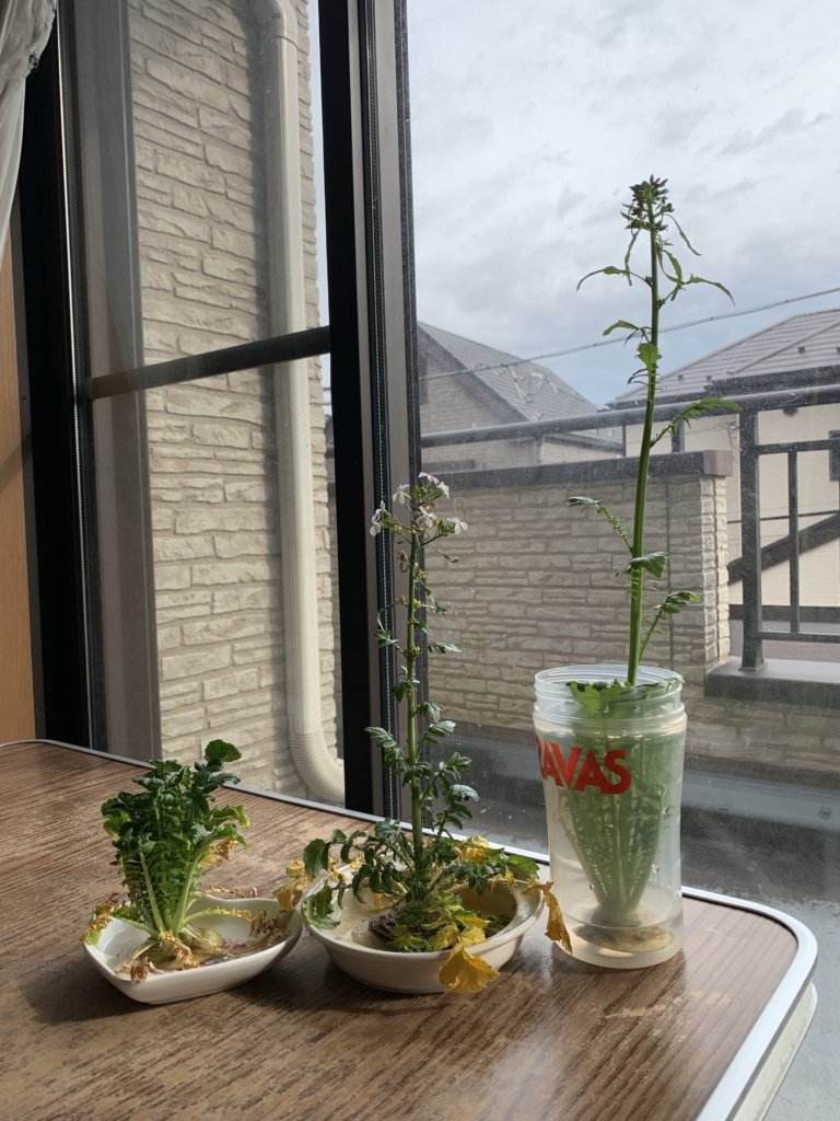 残り野菜で観葉生活〜虫は怖いよ 2022 2/19 つれづれ オススメ 2022.02.19 いちお庭付きの戸建に住んでるのですが、フルタイムワーカー主婦に、ガーデニングはハードル高です。 駆逐してやる〜っっ こんなズボラ主婦の唯一の愉しみは、野菜の切り屑を水栽培することです。 大根の切り屑がこんなに成長しました 中央のものは、うす紫の花を咲かせています。途中、枯れ果ててしまうものがありますが、花を咲かせると、とても明るい気分になれます。自分の未来も明るくなれるような気持ちになります。 しかし、花を咲かせたものには、既にアブラムシがこびりついています。きっと、スーパーで買ったときは卵だったのでしょう。「駆逐してやる〜っっ」 つれづれ オススメ この記事をシェアする 甦るニナ・ハーゲン~さらばメルケル 分かんねーだろうな…。松鶴家ちとせ 関連記事 歌い手さん時代〜yamaさん 2022.10.05 ゴキブリとの仁義なき闘い 2022.08.29 安全な東京でお願いします 2021.11.01 空飛ぶ車、貴方は乗りたい? 2022.10.01 小林清志さん、ありがとう! 2022.08.18 マンガヒーロー像の変遷とは… 2022.06.29 さよならトランティニャン 2022.06.21 人生いろいろ…北原佐和子さん 2022.06.01