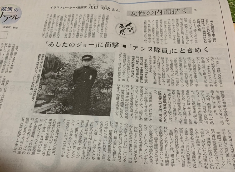 ストップ江口寿史さん 2022 3/15 お店・スポット アニメ・マンガ カフェ オススメ 2022.03.15 日経の夕刊に江口寿史さんが〜っ。 ウチの娘にもこんな時期が… 自分が子どもの頃『ストップひばりくん』がブレイクしていました。遅筆が有名で、よく急病扱いで原稿落としてましたね。言い訳で『白いワニが見える』と仰っていたとか…。 今日のカフェメニュー。ルッコラが主食 江口先生のイラスト、今でもポップでビビッドで、色褪せることがありません。いつまでも「隣にいる彼女」を描き続けて欲しいです。 例の記事。アンヌ隊員は永遠。 お店・スポット アニメ・マンガ カフェ オススメ この記事をシェアする 着付けに四苦八苦〜細雪 さよなら松村さん〜ロッキンオン 関連記事 ラーゲリ〜安田顕さん渋いぞ 2023.01.03 未来形〜田島昭宇さん 2023.02.10 永井豪原画展@トキワ荘 2023.04.12 村生ミオ先生さようなら 2022.04.22 怒りを燃やせ〜獣神ライガー 2023.04.02 逮捕されたいっ!パトレイバー 2022.09.26 一度はしたいベルばらごっこ 2022.10.31 ビルボードライブの思い出 2022.06.27