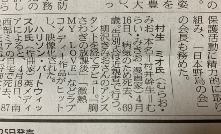 村生ミオ先生さようなら 2022 4/22 アニメ・マンガ その他 2022.04.22 GWが近くなり、疲れた身体にムチを打ち仕事してます。 みんないなくなっちゃう… 村生ミオ先生、たまに青年誌で読み耽ったぐらいですが、女性を描くのがお上手でした。 今朝の日経より 柳沢みきおさんのアシスタントだったとは存じませんでした。死因は癌と書いていたニュースもありました。 ご冥福をお祈り致します。 アニメ・マンガ その他 この記事をシェアする チャイルドプレイ✖️モンチッチ 理化学研究所の女@和光市 関連記事 生きて使命を全うして欲しい! 2022.05.30 伊藤かずえは振り向かない 2021.12.15 ロックミュージカル〜犬王 2022.06.03 アングレーム国際漫画祭って何だ 2023.02.03 パリで焼栗を食べたい!のだめ 2022.10.08 言の葉の庭〜新宿御苑 2022.03.01 ぐでたま礼賛 2022.02.11 どの時代が好き?〜キャプ翼 2022.11.13