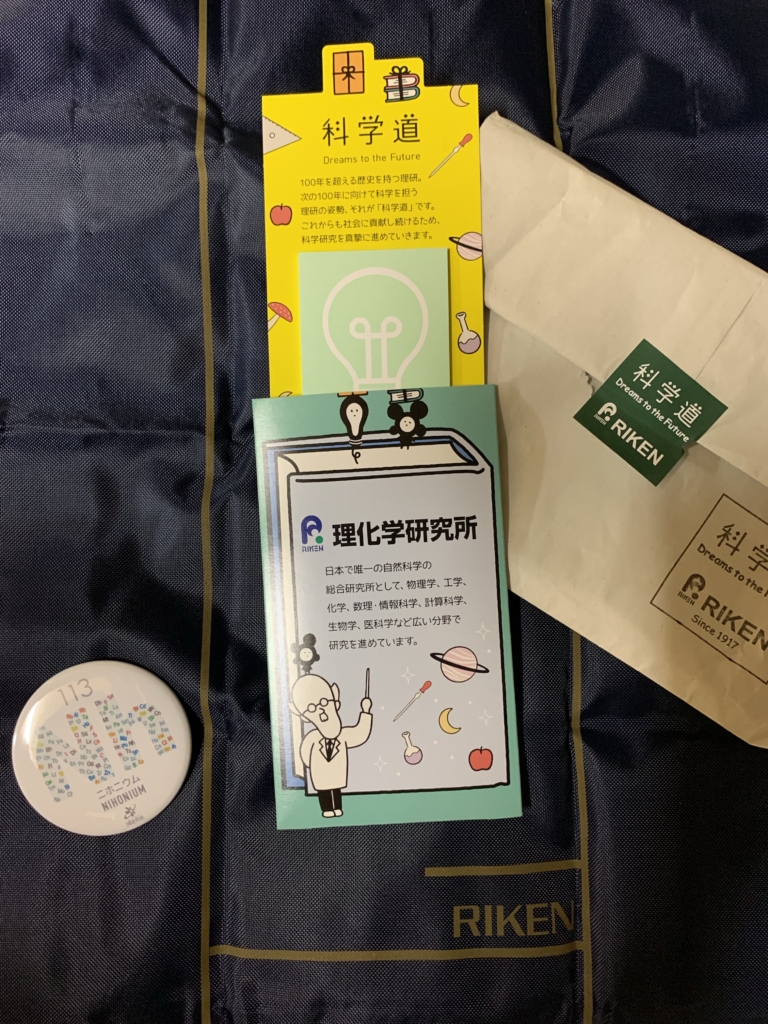 理化学研究所の女@和光市 2022 4/23 お店・スポット 公共施設 2022.04.23 ひと頃話題になった理化学研究所の一般公開に行ってきました。 こんな研究職が何処かに… しかし、な〜んと勝手な勘違いをして中に入れませんでした。( ; ; ) 事前申し込みで当選メールが来た人だけが入れるのに、申し込めば入れると思ってしまい、門前払いを喰らいました。(号泣) 周辺の道路に元素記号が埋め込まれていて楽しい! お供に連れて行った子どもたちにブーブー文句を言われ、余計なものを買わされるというメンドくさい目にも遭いました。(もっと号泣) 年寄り世代は、スマフォの小さい画面から必要な情報を抜き出すのが不得手です。何とかなりませんかねー。 手土産貰いました。エコバッグとか付箋とか。 お店・スポット 公共施設 この記事をシェアする 村生ミオ先生さようなら がんばれアストロノーツ 関連記事 駄菓子屋さんの奇蹟〜新中野 2022.02.26 嵐山オタク紀行 2022.08.27 忍びの国とドライブイン〜大野智 2022.03.06 フジロック、ようやく洋楽勢… 2022.05.06 Hydeと遭遇〜富士急ハイランド 2022.03.27 どおしてなんだよシェークスピア 2022.09.22 デニスホッパー〜兎に角怖い… 2022.04.30 100億の昼と1000億の夜と阿修羅 2022.08.17