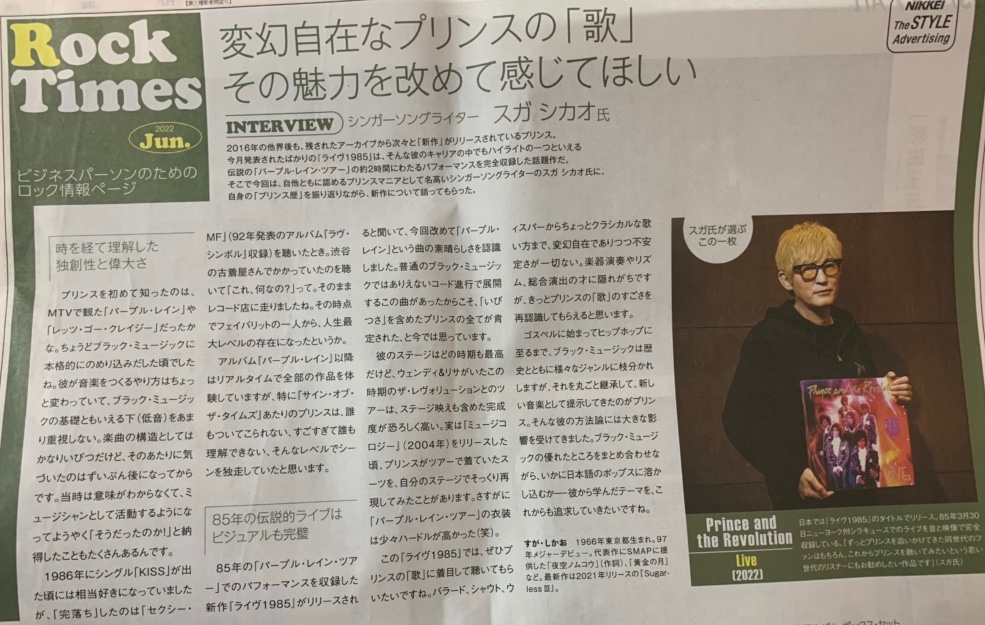 スガシカオとプリンス 2022 6/06 音楽 東京あれこれ 公共施設 洋楽 邦楽 2022.06.06 週末もあっち行ったりこっち行ったりと慌しくすぎて行きました。今更日曜の新聞を読む始末… プリンスファミリーといえばこの方 日経の日曜版だと、たまに往年の洋楽の記事が載っていたりします。 スガシカオさんを見かけるのは久しぶりでした スガシカオさんは大のプリンス好きでして、ステージ衣装もプリンス仕様にするほど。あまり似合っているとは思えませんが…。 同世代としては、いつまでもスガシカオさんのご活躍を祈っております。いつかライブに行きたいです。 代々木青少年オリンピックセンターにて 音楽 東京あれこれ 公共施設 洋楽 邦楽 この記事をシェアする 懐かしの銭湯〜あの子はどこの子? ランボルギーニのピンクレディ 関連記事 ロックなチョコは如何?Queen他 2022.01.28 チャイルドプレイ✖️モンチッチ 2022.04.21 ナイトレンジャーとSFO 2022.06.30 鎌倉殿のバイオレット 2022.12.21 愛していると言ってくれ〜吉祥寺 2021.11.07 40年ぶりのマイケルシェンカー 2022.11.22 ゴキブリとの仁義なき闘い 2022.08.29 マイケルシェンカーの武道館in1984 2022.01.08