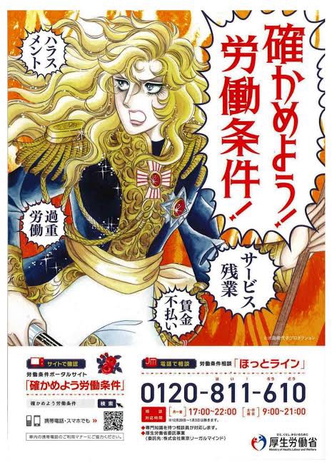 まさにそれ!〜ベルばら 2022 11/15 アニメ・マンガ オススメ 2022.11.15 外回りで都営地下鉄三田線に乗ってたら… オスカル様、助けて〜 厚生労働省がストップブラック残業を訴えるキャンペーンにベルばらを起用していました。笑 ミョーにマッチしてる! 自分の職場、まさにそれ!過重労働にハラスメント、サービス残業。メンタルやられて去るヒトも…。それでもしがみつくって、自分も結構ビョーキなのかも。 アニメ・マンガ オススメ この記事をシェアする 中村佑介展×アジカン ライディーン…アニメ?YMO? 関連記事 Get Wild!で行こうぜ 2022.07.27 岳〜最後はどーなった? 2022.08.11 オタクが般化〜109 2021.11.13 東武動物公園で東京リベンジ 2022.03.25 貴方が私のマスターか 2022.12.29 歌舞伎でもFF 2023.01.20 コスモスに君と~伝説巨神イデオン 2022.01.27 11ひきのねこas郷ひろみ 2023.03.13