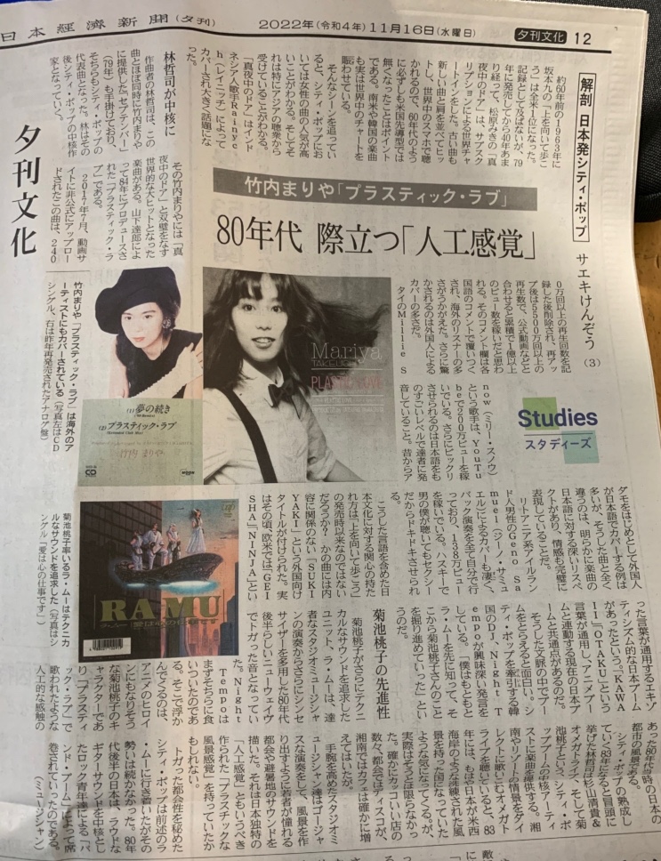ライディーン…アニメ?YMO? 2022 11/16 音楽 アニメ・マンガ オススメ 2022.11.16 最近、日経の夕刊にサエキけんぞうさんの評論が載ってて、今日はシティポップについてだった。 シティポップといえばYMOかなー? YMO…、よくラジオの道路交通情報のBGMに使われてたなーと思い出していました。あの曲、ライディーンでしたっけ…。アニメにもライディーンってあったな。関係あんのかなー? フェードイン! ググったら、ひびきアキラくんは中3なんですね。バイク乗り回してスゴいです。よく見ると前半は富野さん、後半は長浜さんだったと。ハイブリッドです。 菊池桃子のラムーって相当coolらしい あ、ちなみにどちらも江戸時代の力士「雷電」をもじったようです。ルーツは一緒なんだねー。 音楽 アニメ・マンガ オススメ この記事をシェアする まさにそれ!〜ベルばら どっちで観るか?ジョン王 関連記事 渋谷でピチカート〜野宮真貴さん 2022.05.10 中村佑介展×アジカン 2022.11.14 ワンオクで響鬼〜Milletは兎も角 2022.12.27 あおによし奈良〜情報求む 2022.03.29 小田井さんフォーエバー〜純烈 2022.08.02 IWGPから東口へ〜オタク女子 2022.10.28 メンバーも教えて下さい〜BTS 2021.10.06 ヘルプマークは不要〜椎名林檎 2022.10.19