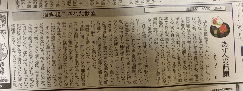 今晩泊まってもいい?竹宮恵子 2023 1/10 アニメ・マンガ オススメ 2023.01.10 日経の金曜夕刊に竹宮恵子先生がコラムを執筆されています。 BLのさきがけ 竹宮恵子さん、今は京都精華大学で教鞭を取られておられるご様子。萩尾望都さんとの確執など、女流漫画家ならではの坩堝があったとは、フツーの読者には関心のないこと。 フツーのヒトは気づかないぐらい小さい記事 美少年が集うヨーロッパ調の学舎。まさに夢の世界でした。ウチの息子を見てると想像できませんが。 アニメ・マンガ オススメ この記事をシェアする 野村ホールディングス×Zepp 高齢DJで気分上々⤴︎⤴︎ 関連記事 引きが悪い〜くら寿司 2021.11.19 歌舞伎でもFF 2023.01.20 4児の母、UAさん 2022.07.30 未来形〜田島昭宇さん 2023.02.10 車イスのリアル〜井上雄彦 2022.06.16 貴方が私のマスターか 2022.12.29 東武動物公園で東京リベンジ 2022.03.25 オタクが般化〜109 2021.11.13